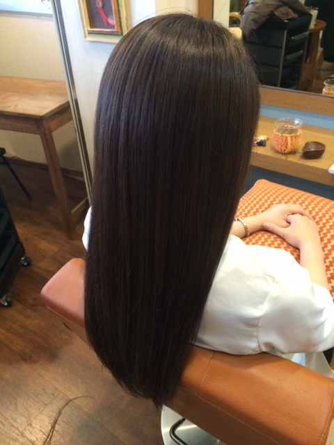 アッシュで暗くすると、一般的な黒染めと違い「赤み」の染料がないので色の抜け方がキレイになります。