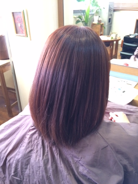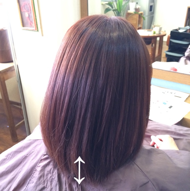 ボブの状態から伸ばしてきているので重めの段差(レイヤー)が入っていない状態です。